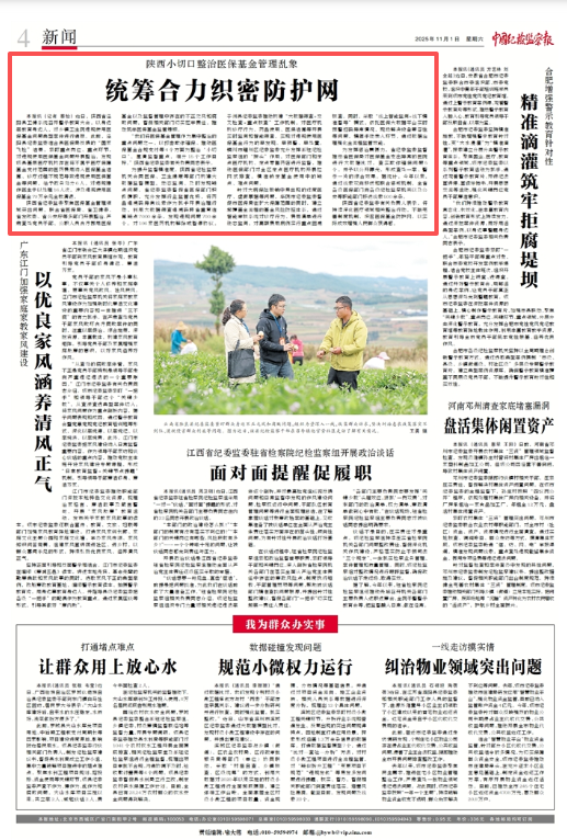 陕西省纪委监委聚焦医保基金管理领域突出问题,联合省医保局、省卫健委、省发改委、省公安厅等多部门开展整治,严肃查处党员干部、公职人员贪污挪用医保基金以及监督管理中存在的不正之风和腐败问题,督促相关部门切实扛牢责任,推动筑牢医保基金监管堤坝。